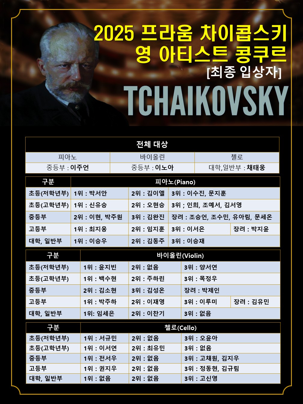 [2025 프라움 차이콥스키 영 아티스트 콩쿠르] 입상자 발표
